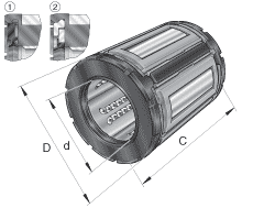 - 基本額定載荷僅適用于淬硬(670+170 HV)及磨削過的作為滾道的軸 基本額定載荷根據(jù) ISO/CD 14 728-1 (最小值)