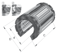 - 基本額定載荷僅適用于淬硬(670+170 HV)及磨削過(guò)的作為滾道的軸 基本額定載荷根據(jù) ISO/CD 14 728-1 (最小值)